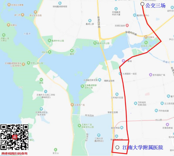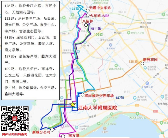目前,江南大學附屬醫院周邊共有公交站點3個,涉及公交線路6條,具體如下: